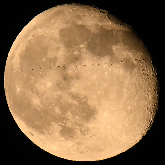 中学2年生の鳥湿地(@bird_swamp_damp)さんが、月を撮影すると何やらアリのようなものが表面を横切っていた。