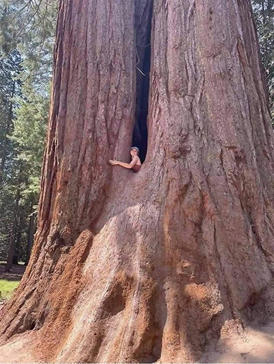 巨木の「隙間」でゴキゲンのお姉さん。あらま、セクシー♪