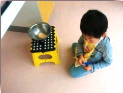 いろいろとなだめすかしたり格闘したりの挙げ句、エプロンも三角巾もしないでいいから、とりあえず部屋の隅にいることに。