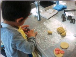 生地をこねる段階でかーちゃんが粘土遊びしてると、やっと参加できました。