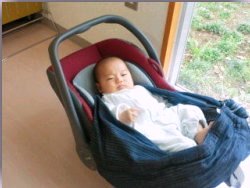 その間、 次男改め2ヶ月児はと言いますと、隅っこで寝たりあーうー言ったり職員さんに抱っこしてもらったり、ずいぶんおとなしくて助かりました。