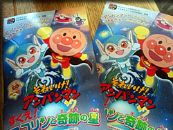 アンパンマンの映画の無料チケットが当選したので、長男様と一緒に見てきました。