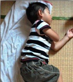 家に帰って爆睡の3歳児、こんな時間にこんなに寝やがって、 |