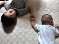 夜は先に寝た次男様のそばで静かにごろごろしながら、弟の手を握って寝るお兄ちゃん。