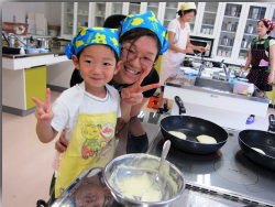 そして今日はパン作りの予定が、先生が急病で来られないとかで、急遽あり合わせの材料でホットケーキに変更Σ( ̄□ ̄;)