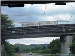 福島と茨城の県境に書いてある福島県人一同からの言葉を写真に撮ること。