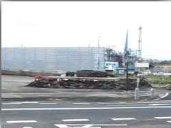 アクアマリンの広かった駐車場も復旧中で、脇に小さな臨時の駐車場が作られていました。
