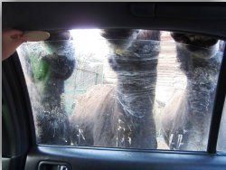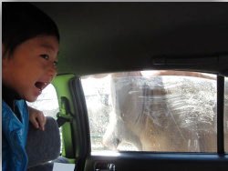 大きな動物たちが車に寄って来るので、長男様、ビビリ気味Σ( ̄□ ̄;)