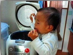 が、給食も完食して帰ってきたというのに、家に帰って炊飯器のごはんもつまみ食い!Σ( ̄□ ̄;)