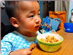 と、それをあっけにとられて見ながら、1人ごはん食べる次男様。