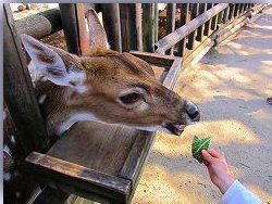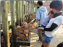 にーちゃんに続けとシカに餌やりしようとした次男様、べろーーーーんとなめられてドン引き。号泣。
