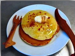 時間はあるし、お邪魔虫次男様はまだ寝てるし、長男様と一緒に朝食用のホットケーキを焼いてました。