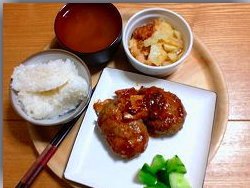 焼き方が悪かったようで、スカスカ気味のハンバーグになってしまいましたが、ソースはおいしくできたのでとりあえずよしとしよう。