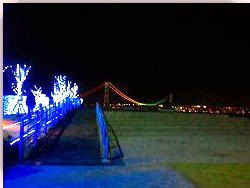 淡路から見た明石大橋、電飾がいろいろ変わるのね。