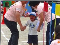 夏祭りの時は、笑顔でお遊戯できた次男様に気を良くして、入場門に連れてったかーちゃんでありますが・・・、次男様号泣。