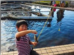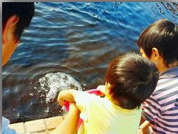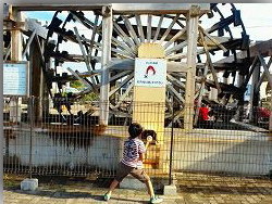 親水公園に行った時のこと、水車をひたすら回す長男様。