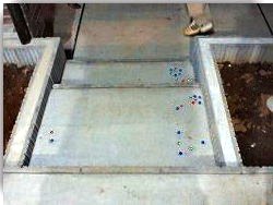 コンクリートを流す時に、ビー玉を埋め込んだのも良かったけど、階段の方はひび割れてしまったのが残念。