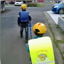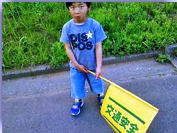 本当は下校時の黄色い旗のおばさんをやんなきゃいけないんだけど、仕事中なので登校時で。