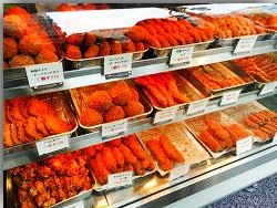 かーちゃんは串カツとコロッケをチャンと半分こ。