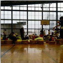 ということで、ひとまずいつも通り、次男様学童へ、かーちゃんは会社へ、昼休みに抜け出して、1日目宿泊地の小学校体育館へ向かう…