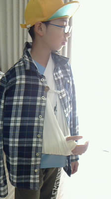 長男様、退院後はギプス装着のため再度通院して、完全固定。