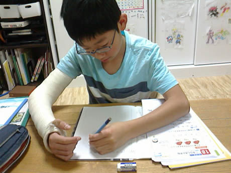 長男様、利き手の右手は使えないので、生活はほぼ左手です。