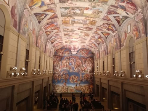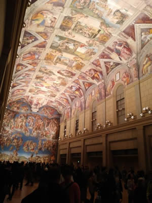 この美術館のウリは、全部陶板による複製なので、 ・劣化しない ・写真取り放題 ・触ってもOK な所です。 館内に入るなり、システィーナ・ホールです。