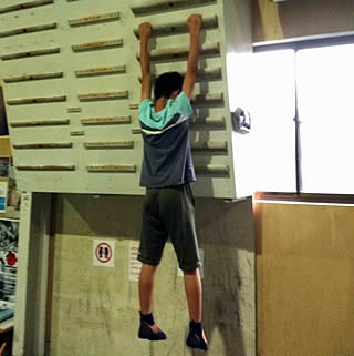 昨年10月にボルダリング中に肘を骨折した長男様、