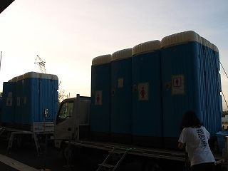 休憩地は公園ですが、トラックでトイレも運んでくれます。