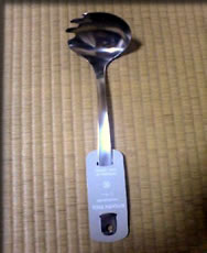 このタイプのお玉は私の敵だ。 というのも、私は左利き。 箸もハサミも、とーぜんお玉も左で使います。 と・こ・ろ・が。 このギザギザのお玉は、右で使うようにできているのです。 これのおかげで、小学生のとき、給食当番になった日は苦痛でしかない。 左手で、このお玉でうどんなんかすくおうとしてみ? ぜっっったい!無理!! ゔきーーーーー!!! さすがに今は、ある程度は右でも使えますが、世の中右利き用にできている・・・と思う今日この頃。 駅の自動改札でも苦労するし。 高齢者にも、妊婦にも、左利きにも右利きにもユニバーサルデザインの普及を望むばかりです。