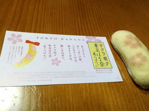 香川へのお土産は毎年恒例(になりつつある)東京ばなな。 たまには違うのと思っても、毎年違うのが出ているので、気になるのであります。 今年は「東京ばななサクラサク」バージョン。