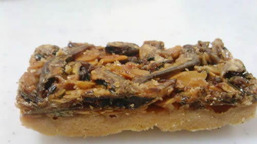 前にもちらっと書いたけど、フロランタンとは 「クッキー生地にキャラメルでコーティングしたナッツ類(多くはアーモンドスライス)をのせて焼き上げてつくる糖菓」 ~なのですが、これは煮干しが載ってる。 クッキー×煮干し。 ですが、味は意外といける。