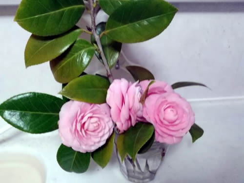 キッチンに椿の花が飾ってありました。