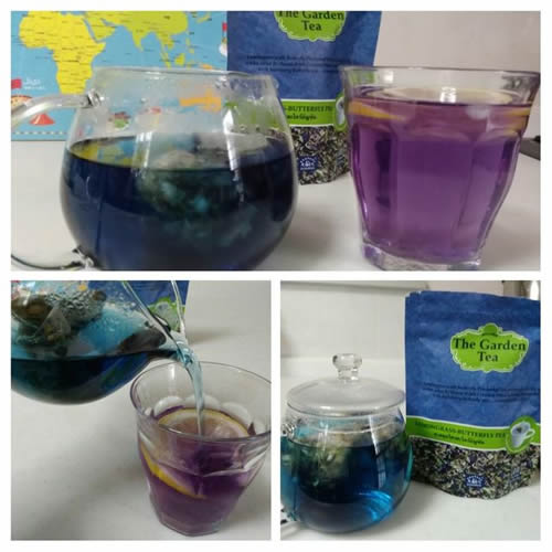 ポッカレモン入りのグラスに入れる端から紫に!!