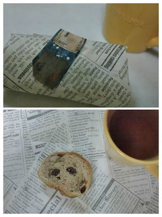 思わず写真撮ろうとして、 ラップ外してパシャリ。 で、私もこんなんやってみたくて後輩にシュトレンをお裾分け。 我が家にあるのは100均のペーパーナフキンですけど。