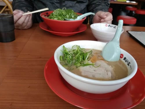 チャンもダイエット中なはずですけど!?( ̄_ ̄) 夫のネギチャーシューはネギ別盛だったのをどばっと。 ラーメンのために朝食を抜いた甲斐あってうまーい。 で、ラーメンの後は桜見物。