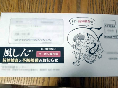 夫のもとに、市より風しんの抗体検査の書類が届きました。