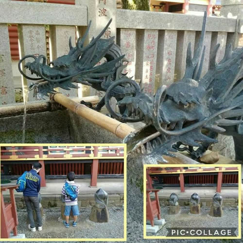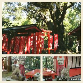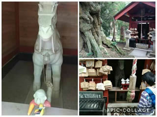 奥にはご神木の三郎杉。 稲荷神社も。 鳥居を見たらくぐってみたい衝動に駆られるかーちゃん、稲荷神社はたまりまへんな。 近くにJRAのトレーニングセンターがあるせいか、勝馬神社なる神社も。 サルが手綱引いてるし。 その他天照大御神、大黒天、菅原道真、知ってるだけでもあちこちに祠と賽銭箱があり、祀れる神様全部祀ってみました!!みたいな。