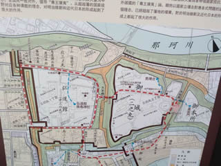 (大手橋と再現された大手門) 大手門をくぐる。 圧巻です。 二の丸跡地、本丸跡地へ向かう道路も整備されており、