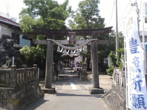 か-ちゃんも神社は好きだし行ってみますか! なるほど、豊漁祈願の幟もあります。