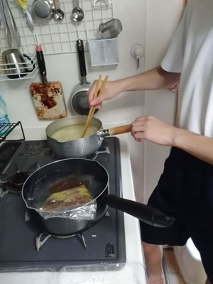 高校見学へ行って帰ってきた兄さん、冷凍ラーメン買って来てました。