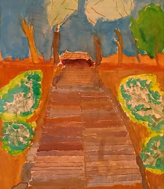 やや照れだったり、無視だったり、ちいさーーーく手を振ってくれたり、σ(≧┰≦ )ベーだったりの息子のいない旗当番はとっても寂しかったな。 それでも次男の友達たちが何か言いたげにかーちゃんを見て行くので、気にかけてくれてるのはとても嬉しい。 嫌なのは学校の先生だけらしく、放課後や休日は友達が遊びに来てくれてるし、中学校は美術部かな~と言ったりもしてるので、中学校は行けるかな・・・。 まあ行けるでしょ、行けると思う、行けるんじゃないかな、まあちょっとは覚悟しておけ状態?(>_<) そんな時に葉羽さんから連絡をもらい、朝からうるっと。 葉羽詩集の宣伝?自画自賛?感も無きにしも非ずですが(^^;)気にかけて頂きありがとうございます。 ←コラコラ!(笑) 次男の絵。 お寺の石段をきれいだと思う感性と階段の色を全て違う色で塗ったところがとても好き。
