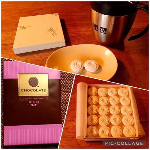 事務所でボス手ずから美味しいコーヒーを淹れて頂き和三盆と。 さらに自宅用にはかぎ餅と八ツ橋を頂く。 かぎ餅はきな粉の甘さがちょうど良く、とっても柔らかい美味しいお餅でした。