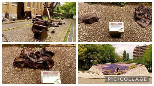 焼けて溶けた鉄屑がオブジェのように並んでいます。