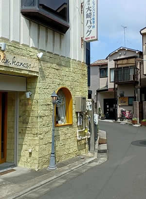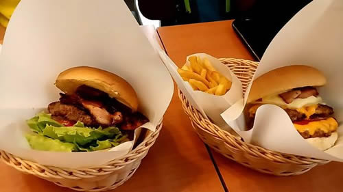 何でこんな道がと思って古地図を見たらば、もともと川でした。 へび道を抜けた所にハンバーガー屋さんを見つけ、ランチです!