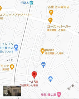 職場のボスより「この道いいよ」と教えられた「へび道」なる道に入る。 めっちゃ細い道がくねくねと。