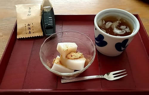 お土産は以前かーちゃんしか食べなかったくず餅を駅で見つけたので。 ペリー来航より前です。 そういや、くず餅も西日本と東日本で違うんでした。