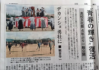 まいがっ(@ ̄□ ̄@;)!! ・・・届けたわ。。。 よっぽど、みんなの前で そんな気力もなく再び自重。 コロナ禍でやってなかったかーちゃんの母校の文化祭も復活したらしく、新聞に載ってたのを送ってもらいました。 青春ですねえ、いいですねえ。