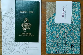 鳥獣戯画やら小野小町の人物画やら源氏絵巻やら。 一通り見たら、お楽しみミュージアムショップです。 かーちゃんは、静嘉堂文庫で和漢朗詠集大田切を見て、和歌と唐紙のコラボに一目惚れしてしまい、こんなハンカチとかあったらいいのにな~と思っておりましたが、今回、古今和歌集の風呂敷発見! これでいいじゃないか!とお買い上げ。 さらには、悩みに悩んだ東博オリジナルの野帳。