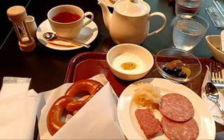 元司書のばば様に解説をして頂く。 かーちゃんの目的はどっちかっていうとカフェなので、気になっていたプレッツェルのセット。 紅茶がめーっちゃおいしいんですけど!!! 外に出たらば、建物の隙間からスカイツリーが。 さて、時間的にはまだ行けそうなので、最後にもう一か所足を延ばす。 「日本一美しい本棚」があるというので見てみたかった。